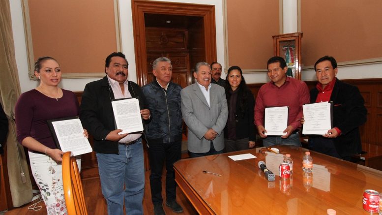 Durante la firma de este convenio, celebrado en Palacio de Gobierno, los alcaldes Carlos Luna Vázquez y Felipe Morales Morales, agradecieron al Jefe del Ejecutivo, Mariano González Zarur, su interés y respaldo para atender el añejo conflicto.