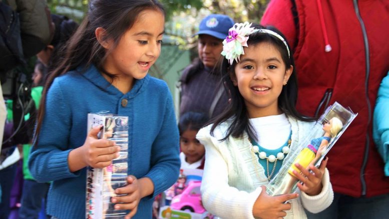 En la sede de la dependencia, en el primer cuadro de la capital, Sandra Chávez Ruelas, esposa del gobernador Marco Mena, entrega más de cuatro mil juguetes a infantes de todo el estado.