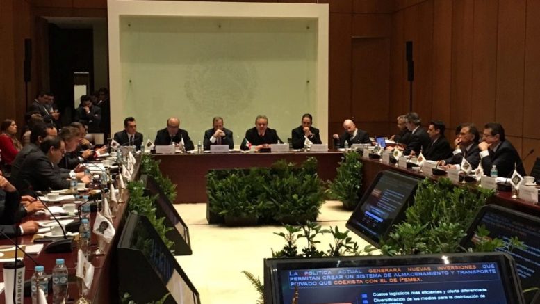 Marco Mena apuntó que durante la reunión “se explicó que el precio de la gasolina no se fija desde este año por decisión gubernamental, sino por las condiciones de los mercados mexicano e internacional. El dólar, al estar más caro, presiona los costos aún más”.