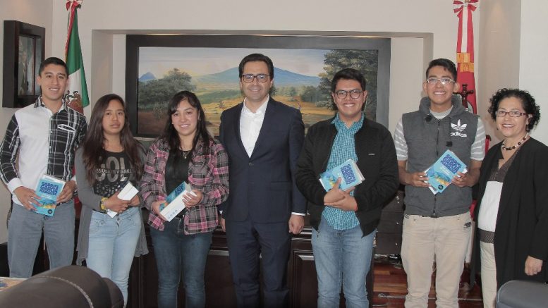 En su despacho, Camacho Higareda recibió a Ángel Iván Arenas Arroyo, del plantel 02 de Huamantla; Karla Yarely León Huerta y Jorge Romero López, del plantel 18 Atltzayanca; Guadalupe Zuleima Muñoz Díaz, del plantel 19 Xaloztoc, e Iván Pérez Gómez, del plantel 20 de Ixtenco.