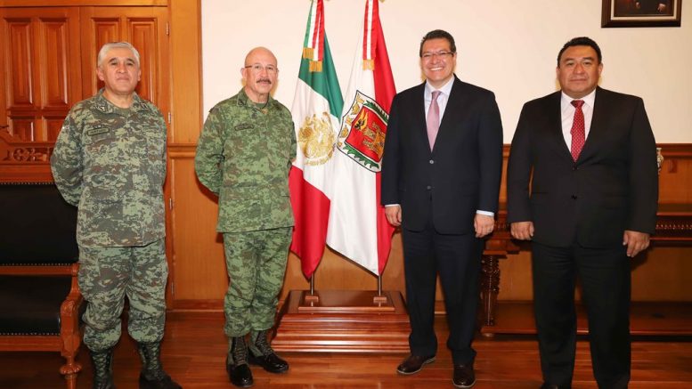 Durante la reunión que se celebró en el Palacio de Gobierno, el Gobernador Marco Mena y el Comandante de la Sexta Región Militar -que incluye a Tlaxcala, Veracruz y Puebla-, coincidieron en que el trabajo conjunto entre instituciones y gobiernos se traducirá en el fortalecimiento de las condiciones de paz y seguridad en la región.