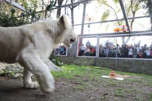 Coyuntura/La Coordinación General de Ecología (CGE) llevó a cabo este domingo la celebración del primer año de vida de “Xonotli”, león blanco que nació en cautiverio en el Zoológico de Tlaxcala.