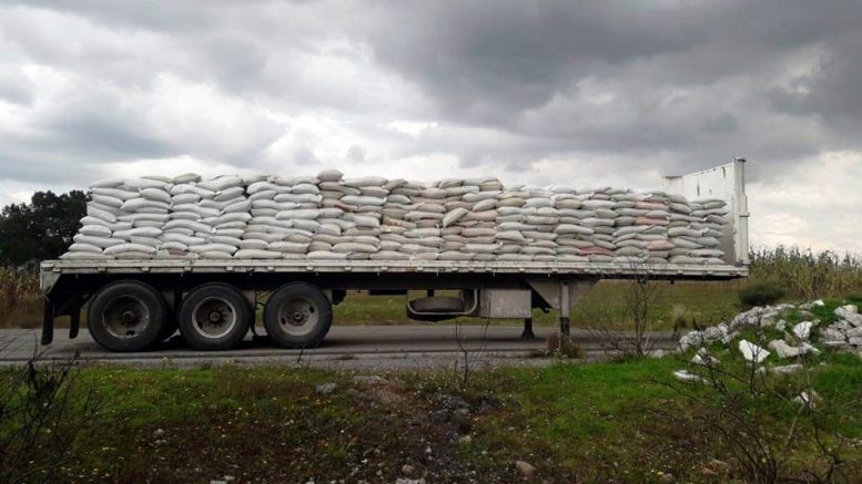 Coyuntura/La Comisión Estatal de Seguridad (CES) a través de la División de Operaciones región Calpulalpan, aseguró la tarde de este lunes, una plataforma con bultos de fertilizante.