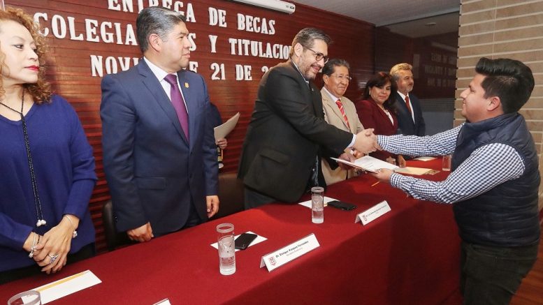 Coyuntura/Con el compromiso de apoyar a los jóvenes para continuar con sus estudios y obtener el documento que avale su preparación profesional, la Universidad Autónoma de Tlaxcala, a través de la Fundación UAT, otorgó 59 becas de colegiatura y titulación a alumnos y egresados de las diferentes Facultades y Unidades Académicas Multidisciplinarias, en evento efectuado en la sala de video conferencias de la Infoteca Central.