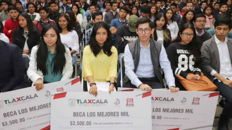 Coyuntura/El Gobernador Marco Mena entregó la beca “Los Mejores Mil” a los estudiantes tlaxcaltecas que obtuvieron los resultados más altos en el examen estandarizado que elaboró, aplicó y calificó el Centro Nacional de Evaluación Superior (Ceneval) en semanas anteriores, por lo que recibirán a partir de ahora una beca mensual de tres mil quinientos pesos si son mujeres y de tres mil pesos si son hombres, durante un año.