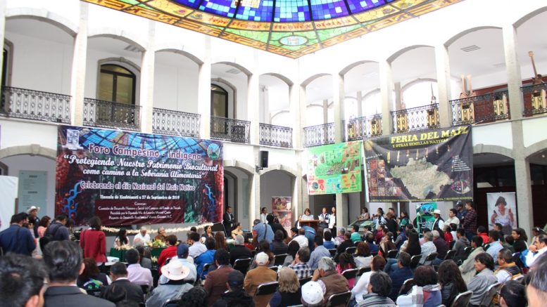 En la activiadad que se desarrolló la mañana de este viernes en el Patio Vitral del Congreso del Estado, en el marco del Día Nacional del Maíz Criollo, participaron capesinos de los diferentes municpios de la entidad.
