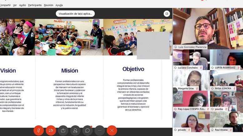 Para coadyuvar a la concreción de proyectos de la agenda nacional y visibilizar el trabajo que se genera en la Universidad Autónoma de Tlaxcala, el Dr. Luis González Placencia, Rector de la UATx, participó en la “Primera sesión virtual 2020 de la Comisión para la Primera Infancia”, en la que presentó la Licenciatura Interinstitucional en Educación Inicial y Gestión de Instituciones, que cuenta con el respaldo de 16 Instituciones de Educación Superior (IES) de nuestro país.
