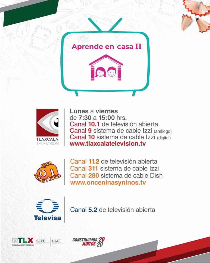 Los contenidos curriculares se difundirán a través del canal 10.1 de televisión abierta; y en el sistema de cable Izzi, por el canal 9 análogo y 10 digital de Tlaxcala Televisión.