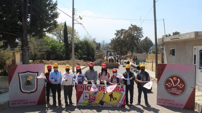 Coyuntura/El alcalde Miguel Ángel Sanabria Chávez acompañado de su esposa, la licenciada Diana Arana Cuamatzi y de los regidores que integran el Ayuntamiento, dieron el banderazo de inicio de obra en la calle “Y”, que pertenece a la comunidad de San Lucas Tlacochcalco, la cual beneficiará a 77 viviendas, que representa a 460 personas de ese lugar.