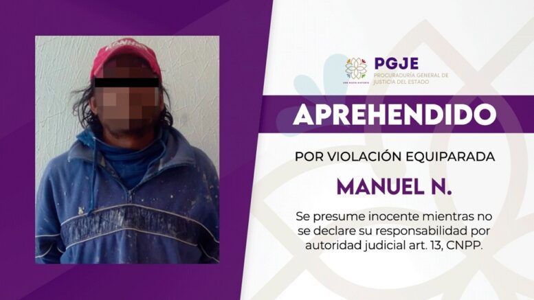Coyuntura/Producto del trabajo coordinado entre la Procuraduría General de Justicia del Estado de Tlaxcala (PGJE) y la Fiscalía General del Estado de Puebla, fue posible la captura de Manuel L., sobre quien pesaba una orden de aprehensión por el delito de violación equiparada en contra de una menor de edad.
