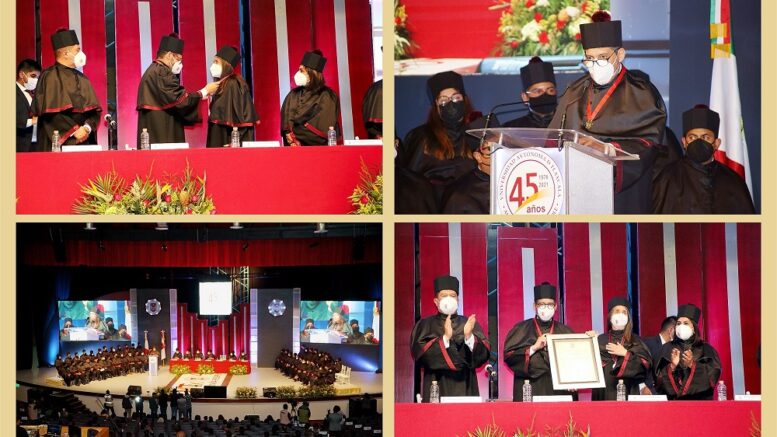 El Dr. Luis González subrayó que, la COVID-19, nos alejó de los campus y nos arrojó al mundo virtual, al que recién hemos comenzado a comprender, por lo que, nuestra institución, debe consolidar esa dimensión, aprender de ese entorno y transformarse al ritmo que ello exige, y estar lista para brindar nuevas carreras que la realidad demanda y que los jóvenes requieren para hacerle frente a los nuevos retos: “a 45 años, emprendemos el camino para que la Autónoma de Tlaxcala sea siempre una universidad solidaria, una universidad humanista y una universidad de y para el siglo XXI”, sentenció.