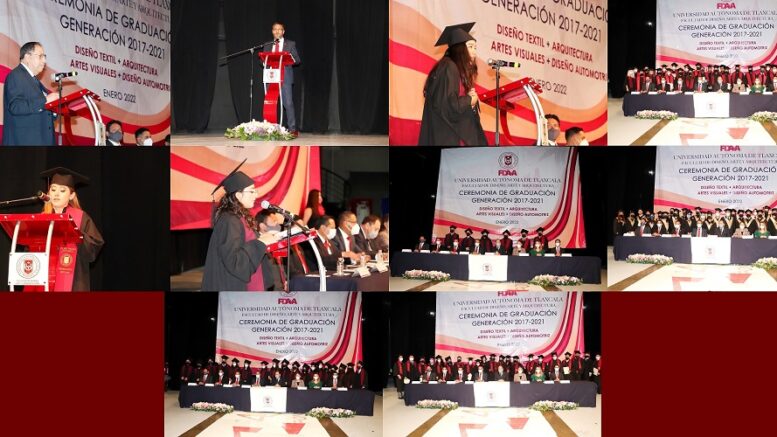 Coyuntura/Contribuir con la sociedad entregando profesionales que respondan a las exigencias que marca la globalización, es una tarea fundamental de la Universidad Autónoma de Tlaxcala (UATx), en este sentido, se efectúo la graduación de 129 estudiantes de la generación 2017-2021 de los programas educativos en Diseño Textil, en Arquitectura, en Artes Visuales y en Diseño Automotriz, realizada en el Centro Cultural Universitario (CCU).