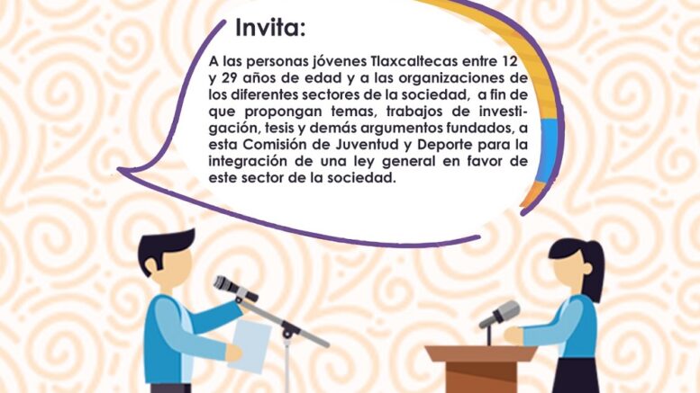 Coyuntura/La Comisión de Juventud y Deporte de la LXIV legislatura del Congreso del Estado, que preside la Diputada Local Leticia Martínez Cerón, propició la emisión de la convocatoria dirigida a las juventudes tlaxcaltecas de entre 12 y 29 años de edad, para participar en los foros para la integración de la Ley de Personas Jóvenes para el Estado de Tlaxcala.