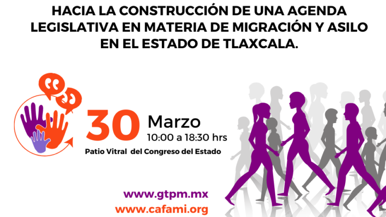 Coyuntura/Con el propósito de construir una Agenda Legislativa en materia de migración y asilo para el Estado de Tlaxcala desde una perspectiva de derechos humanos, género, ciclos de vida e interculturalidad; el Centro de Atención a la Familia Migrante Indígena (CAFAMI) y el Grupo de Trabajo sobre Política Migratoria (GTPM), en colaboración con la LXIV Legislatura del Congreso del Estado Libre y Soberano de Tlaxcala, llevarán a cabo un Diálogo de personas expertas denominado, “Hacia la construcción de una Agenda Legislativa en materia de migración y asilo en el Estado de Tlaxcala”, a celebrarse el próximo 30 de marzo a partir de las 10:00 horas.