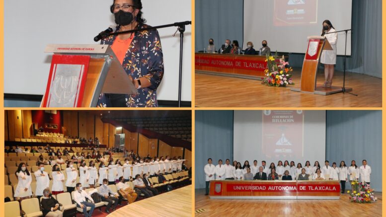 Para dar cumplimiento a los parámetros de calidad y ratificar el nivel de conocimientos adquiridos, la Universidad Autónoma de Tlaxcala (UATx), a través de la Facultad de Ciencias de la Salud, efectúo la ceremonia de titulación de estudiantes de la Licenciatura en Química Clínica, correspondiente al Ciclo Primavera 2022, realizada en el Teatro Universitario.