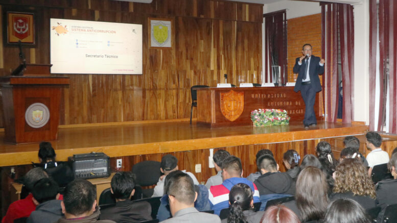 Bajo la organización de la División de Ciencias Sociales y Administrativas de la UATx, este ciclo comenzó con la ponencia “Estructura del Sistema Nacional Anticorrupción del Estado”, a cargo del Maestro Juan Carlos Cruz Jiménez, integrante del Comité de Participación Ciudadana y Titular de la Comisión de Educación miembro de la SESAET.