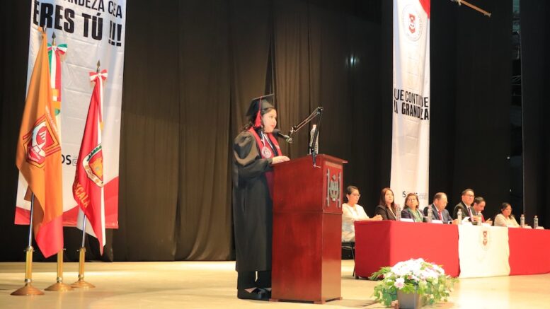 A su vez, Maribel Hernández, estudiante de la Licenciatura en Turismo Internacional, en representación de los graduados de la generación 2021-2025, agradeció a los docentes por haber compartido con ellos su experticia y sabiduría, y también a los padres de familia por darles la oportunidad de contar con una preparación profesional y contar con mejores oportunidades para su crecimiento personal.