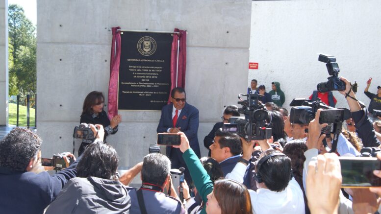 COYUNTURA/ El Doctor Serafín Ortiz Ortiz, Rector de la Universidad Autónoma de Tlaxcala (UATx), entregó la estructura del Proyecto Educa UATx: Torre de Rectoría a la comunidad universitaria, con la presencia de la Licenciada Lorena Cuéllar Cisneros, Gobernadora del Estado de Tlaxcala, exrectores, invitados especiales y docentes y estudiantes, en ceremonia que tuvo lugar en el Auditorio Semifijo de “Educación Inicial”, ubicado en la planta baja de la Torre de Rectoría, en el marco de los 500 años de la Fundación de la Ciudad de Tlaxcala.