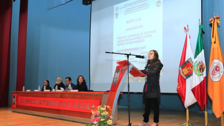 Convocado por la Facultad de Trabajo Social, Sociología y Psicología (FTSSyP-UATx) y la Red Nacional de Estudiantes de Sociología (RNES), el Congreso reúne a estudiantes de Sociología para abordar los desafíos de esta disciplina. Ante esta audiencia, en el Teatro Universitario, el Doctor Ortiz expuso que a través de la sociología del conocimiento los fenómenos tienen sentido y significado a partir de la construcción de la realidad de las sociedades.