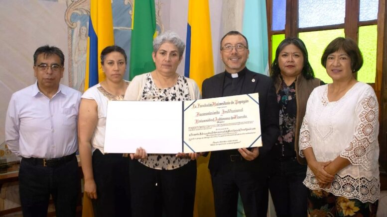 COYUNTURA/La Universidad Autónoma de Tlaxcala (UATx) recibió un Reconocimiento Institucional por parte de la Fundación Universitaria de Popayán (FUP) de Colombia, por su “destacada trayectoria en la formación integral de profesionales comprometidos con la excelencia, la investigación y el desarrollo social, así como por su permanente contribución al fortalecimiento de la cooperación académica internacional”, señaló el Padre José Gregorio Rodríguez Suárez, CJM., Rector de la FUP.