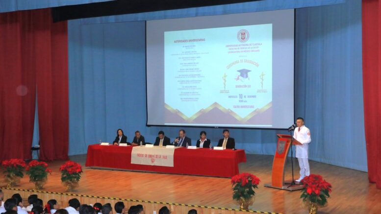 COYUNTURA/La Facultad de Ciencias de la Salud de la Universidad Autónoma de Tlaxcala (FCS-UATx) llevó a cabo la Ceremonia de Graduación de 87 estudiantes de la Licenciatura en Médico Cirujano, generación 2020–2025, en el Teatro Universitario.