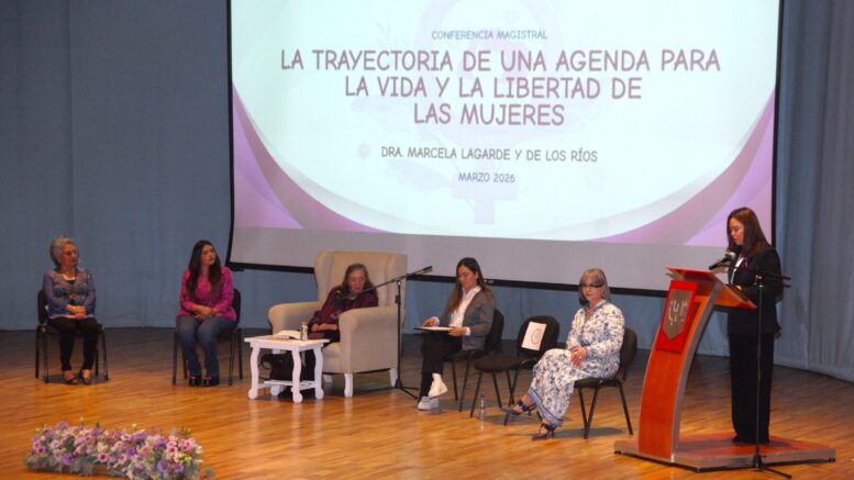 La conmemoración del Día Internacional de la Mujer en 2026 ubica como temas sobresalientes los derechos, la justicia y las acciones, consideró el Doctor Serafín Ortiz Ortiz, Rector de la Universidad Autónoma de Tlaxcala (UATx), al dar la bienvenida a la Doctora Marcela Lagarde y de los Ríos, académica e investigadora mexicana y destacada especialista en feminismo latinoamericano, quien dictó la conferencia magistral “Trayectoria de una agenda para la vida y la libertad en las mujeres”, en el Teatro Universitario.