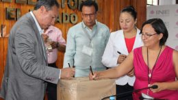 Christian Toledo/La candidata por la coalición “Por México al Frente” a la Senaduría, Minerva Hernández Ramos, recibió de manos del vocal ejecutivo de la Junta…